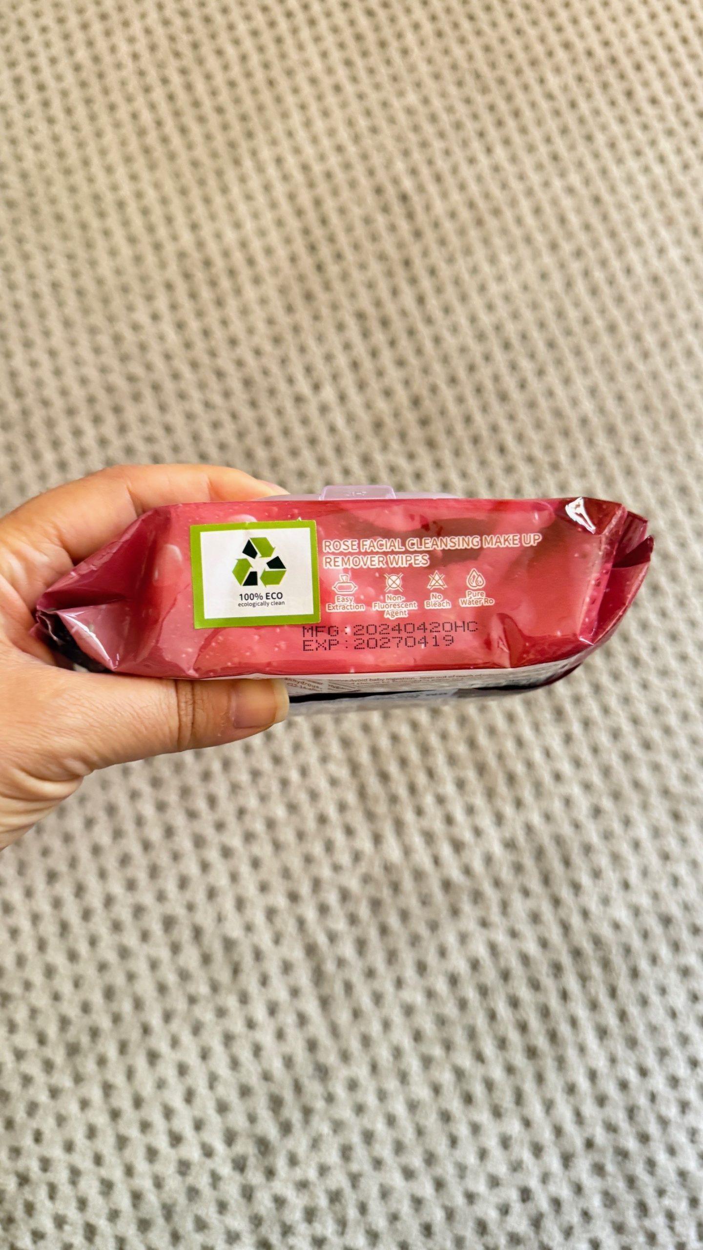 Makeup Remover Wet Wipes Product Name: Rose Facial Cleansing Make Up Remover, keep out of reach of infants. Keep out of the sun, seal, store in a cool place.